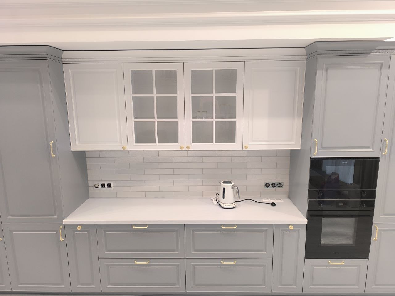 Фурнитура: немецкие петли Hettich, выдвижные системы InnoTech Atira; выдвижные корзины Element с отделкой серый Orion
