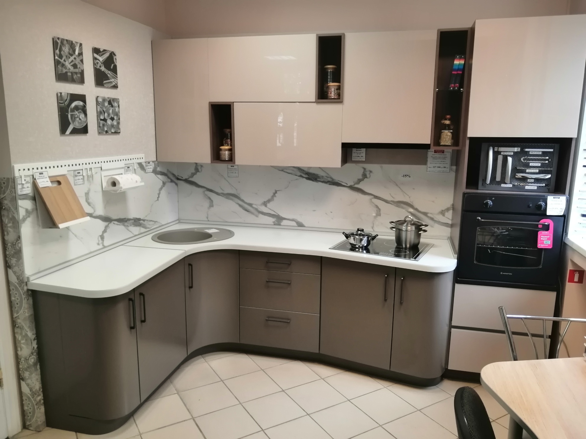 Конструктивные особенности: идеальная глянцевая поверхность верхних шкафов, профиль GOLA ,оригинальные плавные формы, ящики полного выдвижения.